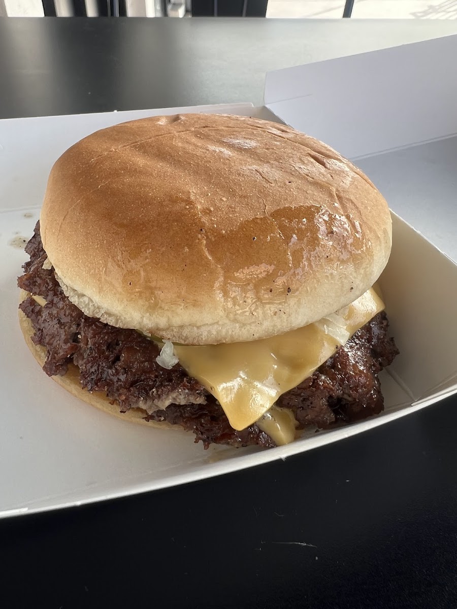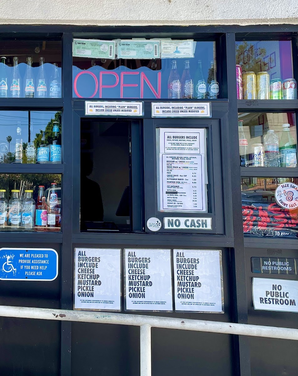 Some of the best burgers and fries I’ve ever had. Burger is super flavorful. I think the double is the best ratio or else it may be a bit too salty with the triple. Gonna try triple next time tho You need to get the cheese sauce to dip the fries and burgers in! The fries taste similar to McDonalds fries Take out window service with a few casual outdoor seats out front. No bathroom, but you can use the one at the coffee shop next door